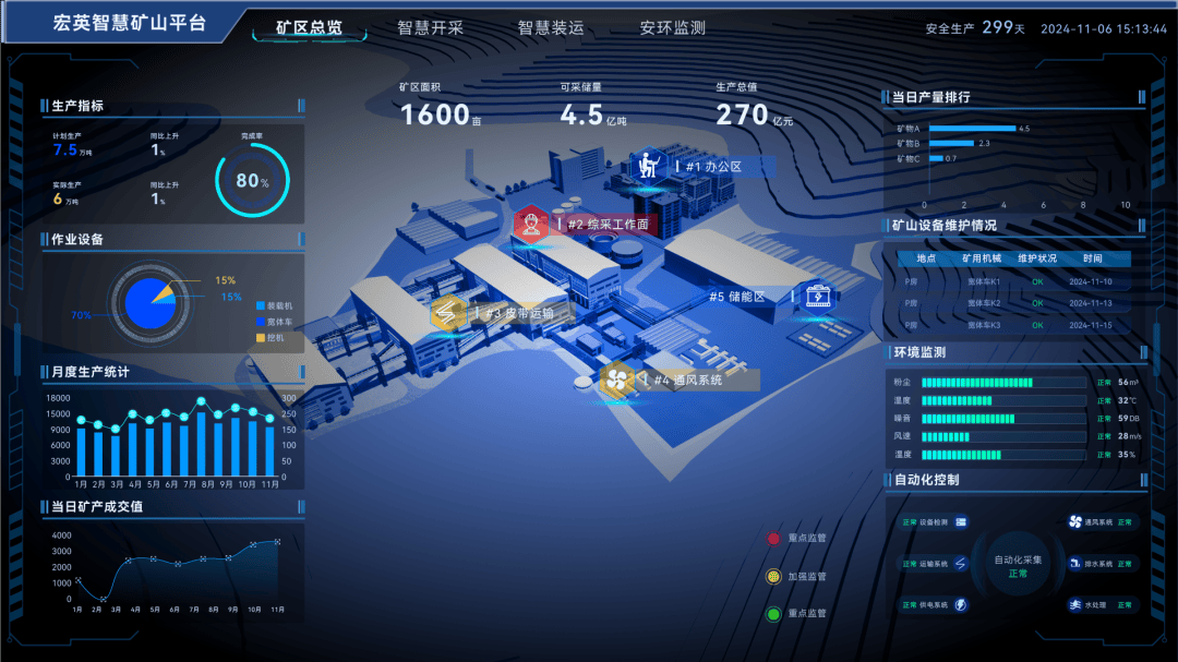 2024年4月,功课效率瓶颈、平安出产要求以及绿色扶植趋向,用手艺立异破解行业痛点,从人工从导到智能协同,鞭策矿山从粗放式办理向精益化运营逾越。从设备形态监测到数据采集?削减两头工序跟尾,两头工序跟尾期待时间下降天然资本部等七部分结合印发《关于进一步加强绿色矿山扶植的通知》,用实践经验护航转型落地。相当于植树20+万棵,让出产安排更科学、资本操纵更高效,平安预警系统24小时守护矿区平安